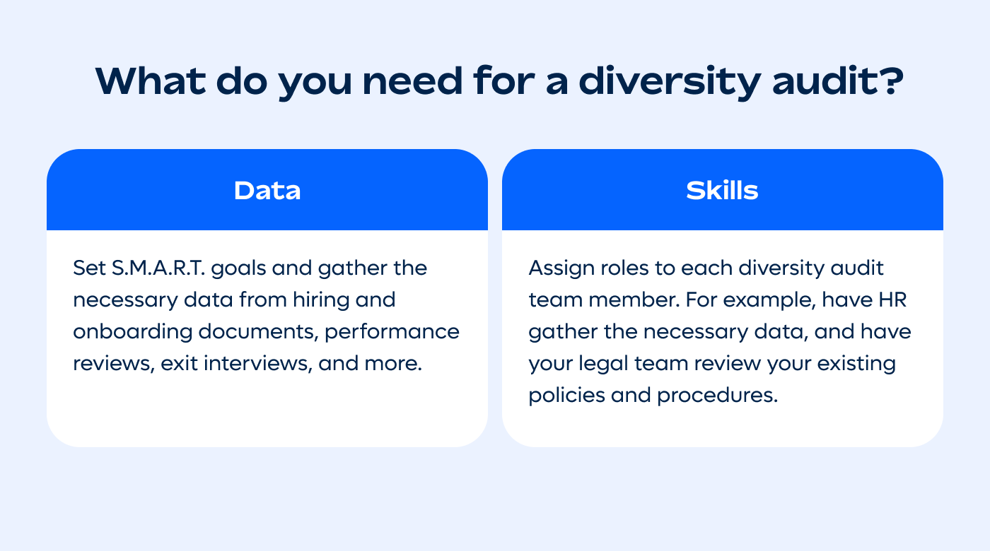 To start a diversity audit, you need a combination of the right data and skills. Here’s how you can prepare each of these items.