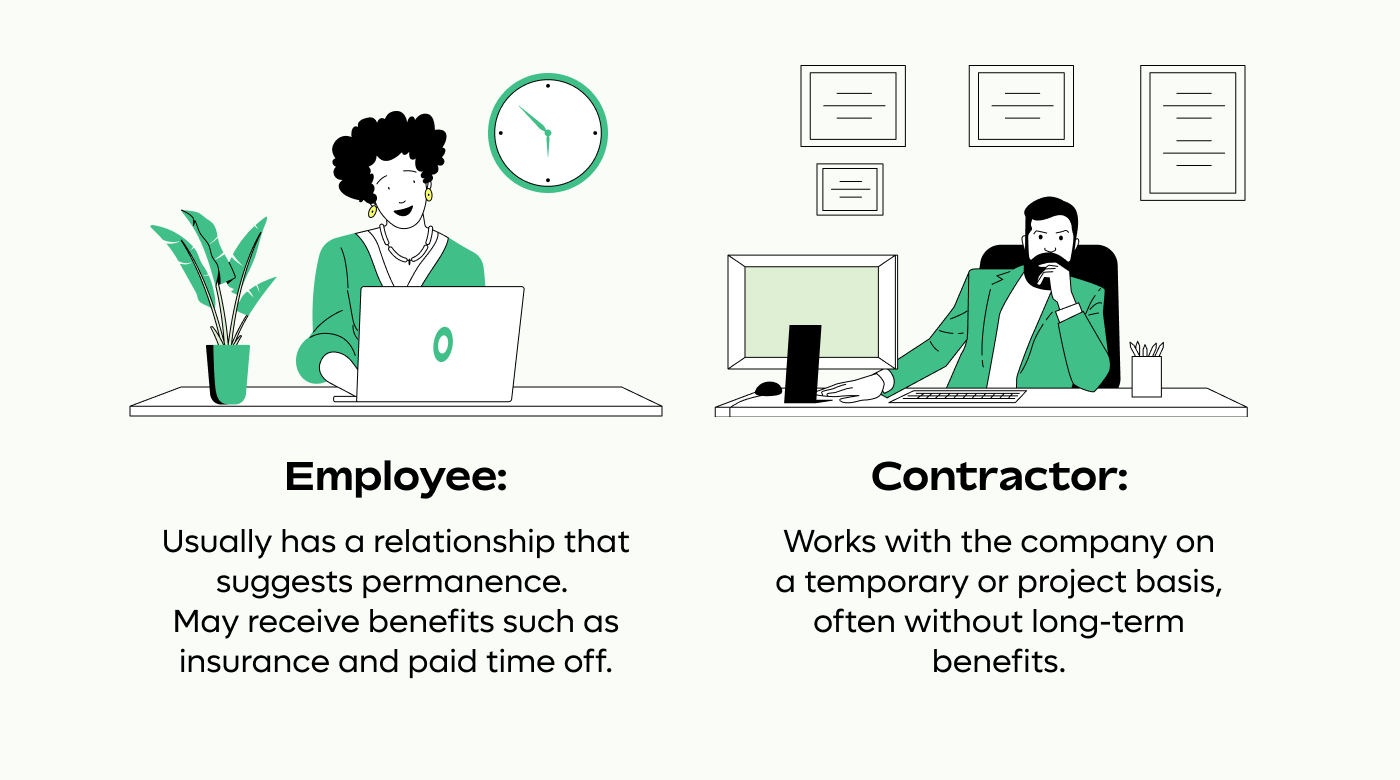 - Contractor: This individual has more freedom to decide on their hours and how to complete their work — as long as they fulfill their contract’s requirements.