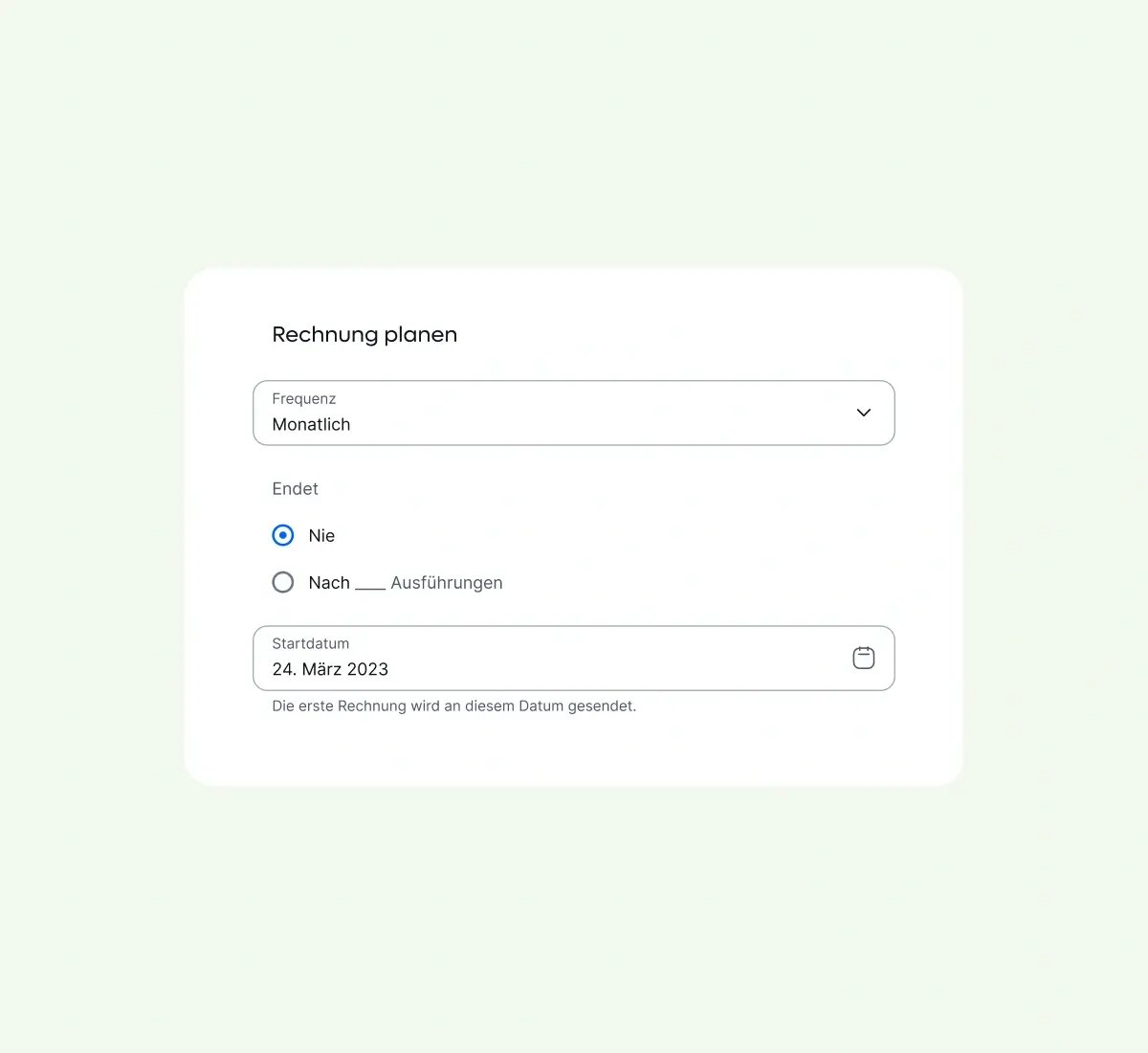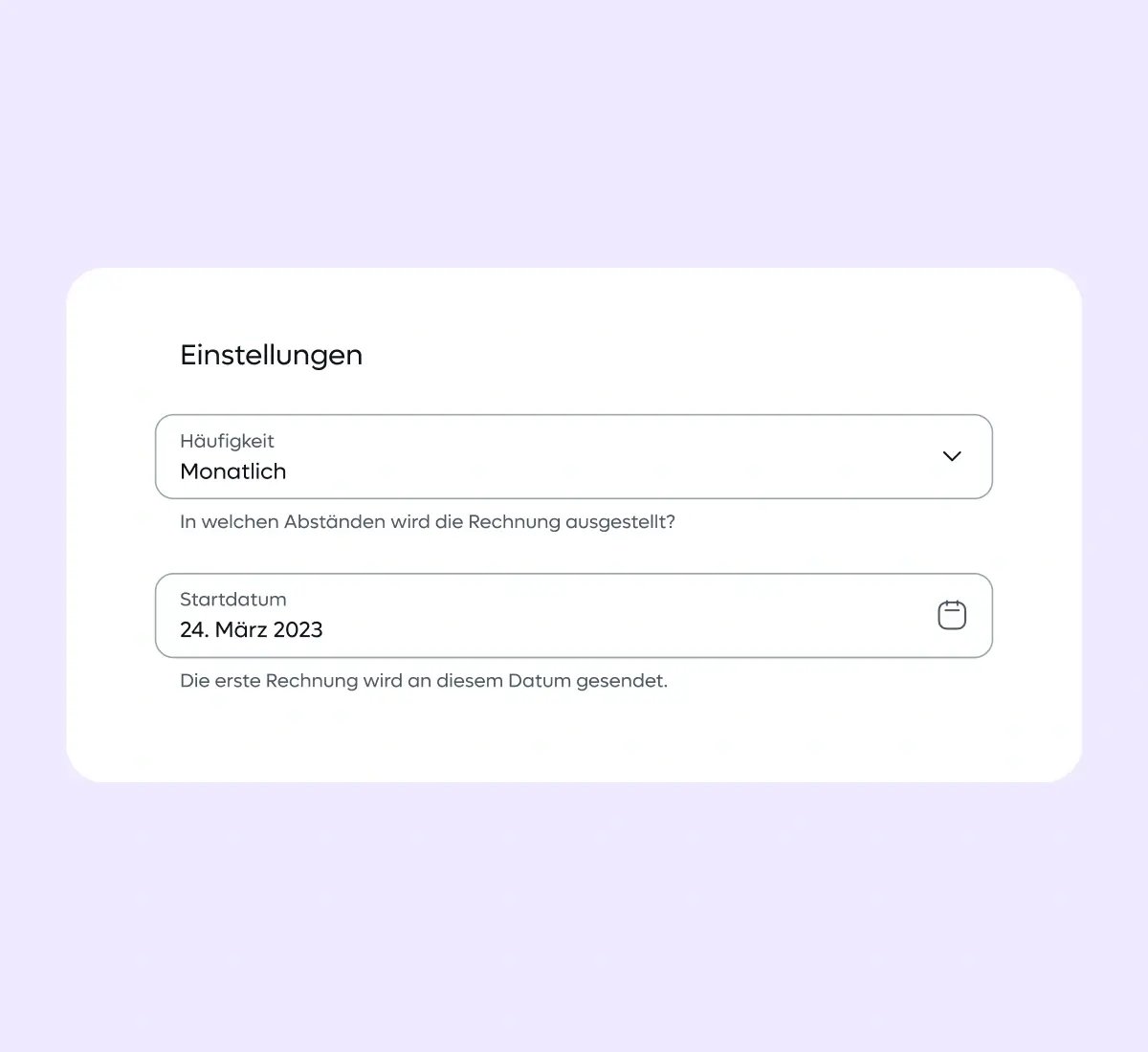 Auftragnehmer:innen können Rechnungen automatisch wöchentlich, zweiwöchentlich oder monatlich generieren lassen und ein Start- und ein Enddatum festlegen. Das ist ideal für befristete Verträge.
