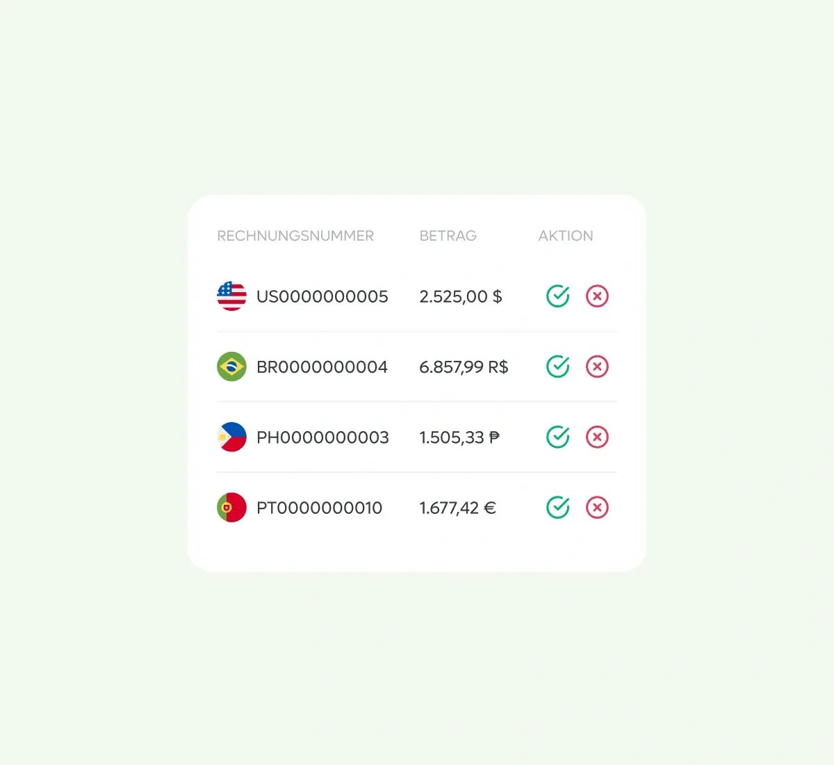 Währungsbarrieren gehören jetzt der Vergangenheit an. Bezahle deine Auftragnehmer:innen in der Währung, die für dein Unternehmen am besten geeignet ist. So vermeidest du Reibungsverluste und entlastest zugleich deine Buchhaltungsabteilung.