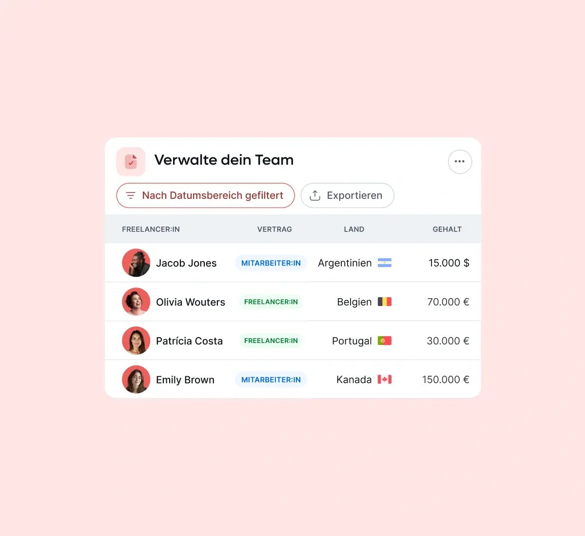 • Wie einfach ist das Onboarding, die Bezahlung und die Verwaltung deines Teams?