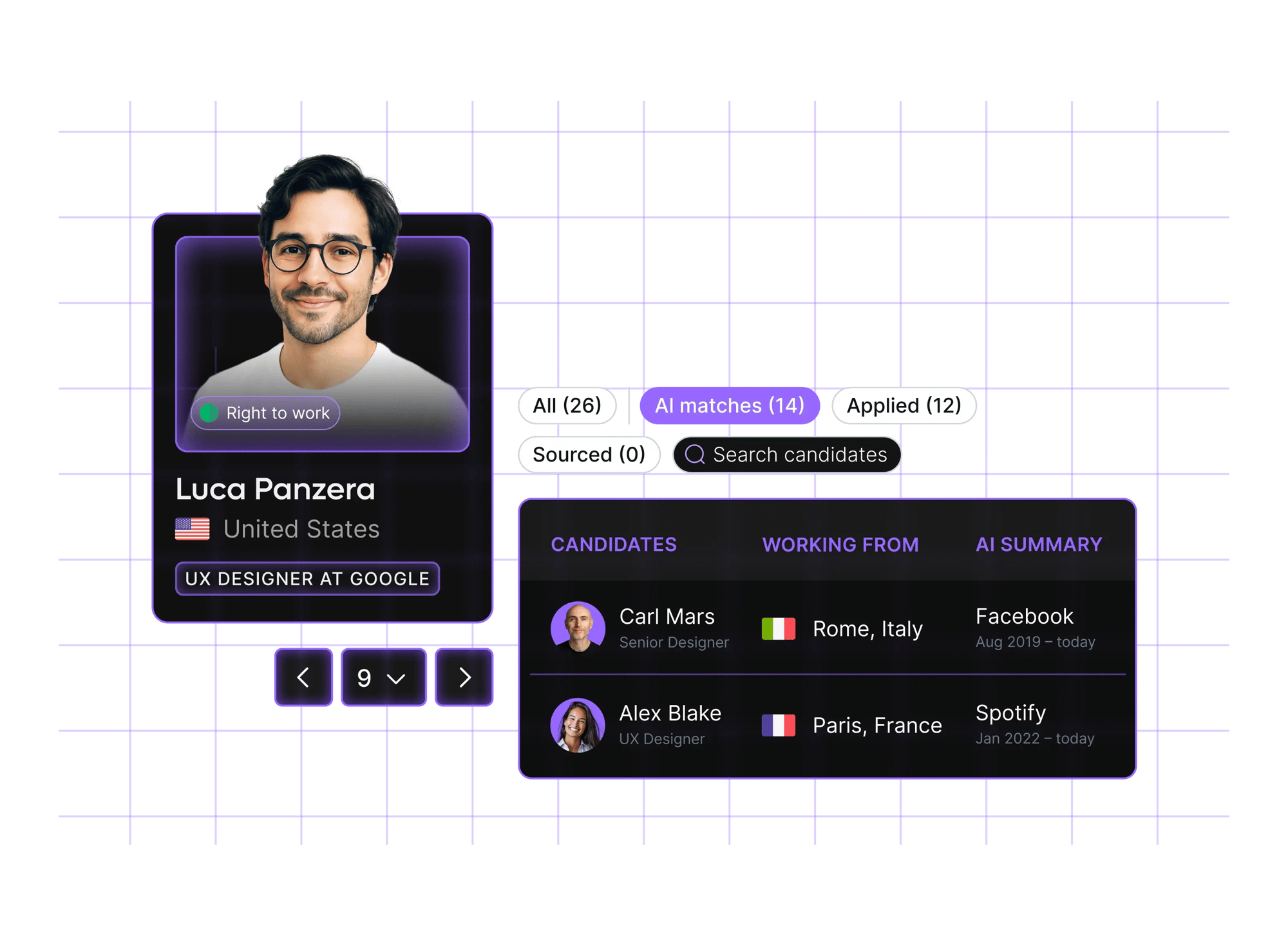 Recruit searches a massive global talent pool to deliver strong matches in seconds.