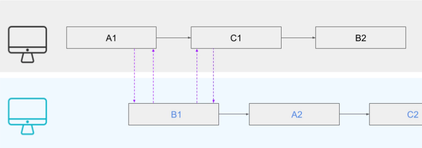 En este ejemplo, la comunicación se realiza mediante mensajes escritos y una documentación bien redactada. En estos casos, aunque el objetivo final del intercambio de mensajes se alargue en el tiempo, el impacto en el flujo de trabajo es insignificante y a menudo supone una mayor ejecución.