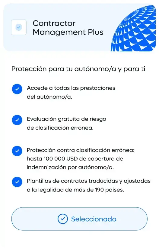 Simplifica la supervisión de los autónomos: gestiona y apoya en condiciones a tu plantel de trabajadores por cuenta propia globales.