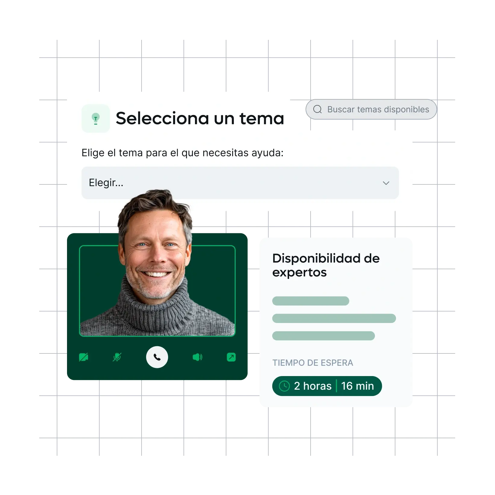 Ve a la sección Pregunta a un experto de la barra lateral. Elige el tema sobre el que necesitas ayuda, añade contexto y selecciona la hora que mejor te venga. Disponibilidad garantizada en menos de 48 horas.