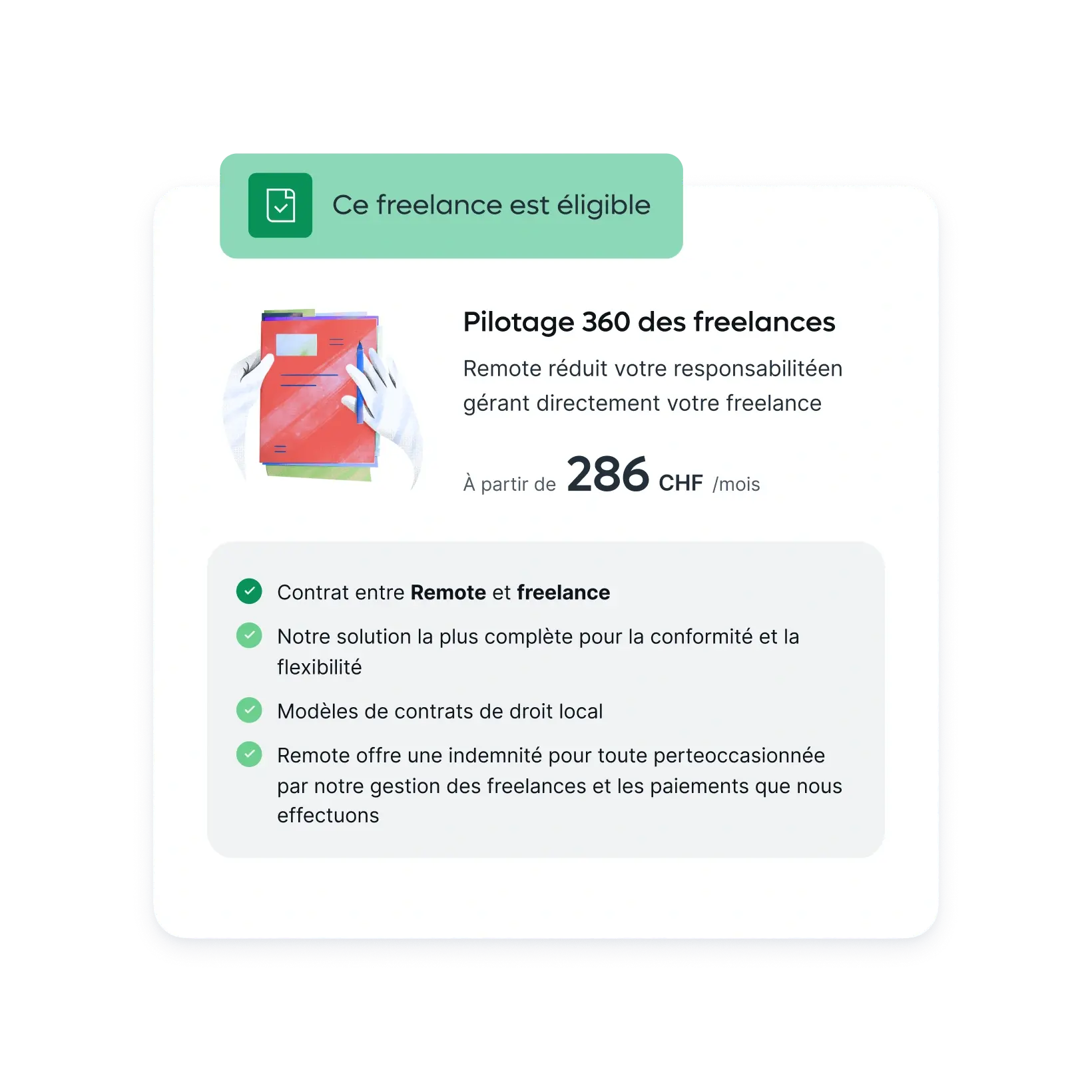 Pour une expansion plus rapide et plus sûre, Remote s’occupe de l’intégration, des paiements et des départs : développez-vous à l’international sans avoir à vous soucier de la gestion des freelances.