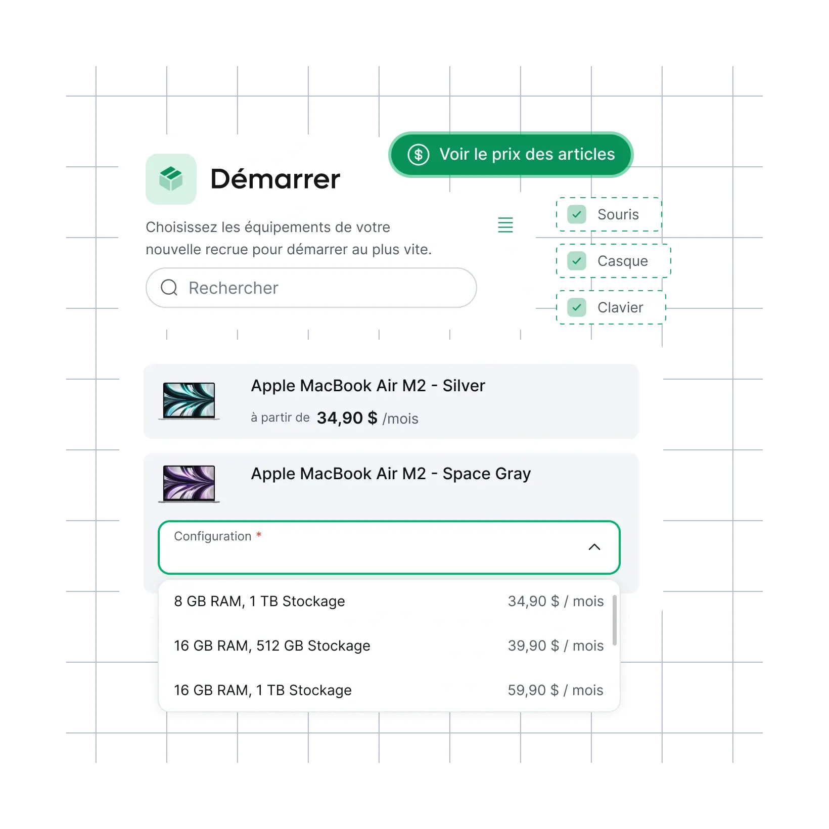 La gestion des appareils de Remote est disponible directement dans votre flux d’intégration. Prenez toutes les mesures nécessaires pour le choix des équipements, l’expédition et la sécurité, sans quitter la plateforme de Remote.