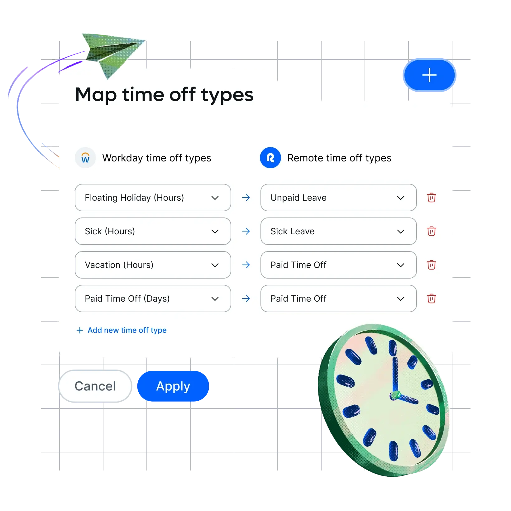 Keep employee and time-off data synced between Workday and Remote. No duplicate data entry, no errors. Just smooth, reliable payroll.