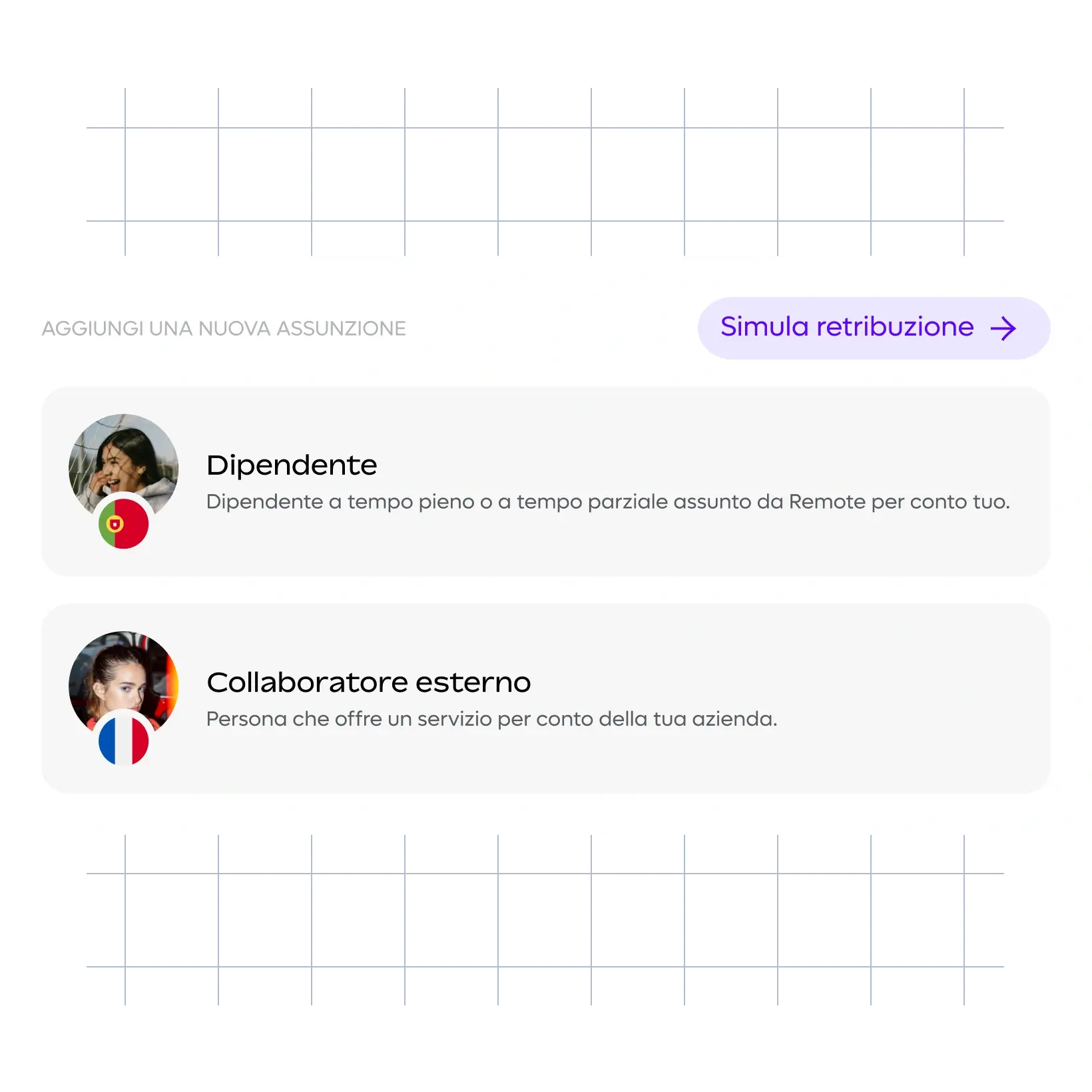 Non disponi di un’entità locale? Nessun problema. Remote ti aiuta con le assunzioni a livello globale, occupandosi di buste paga, benefit, tasse e conformità, mantenendo i tuoi dipendenti soddisfatti e la tua azienda al sicuro.