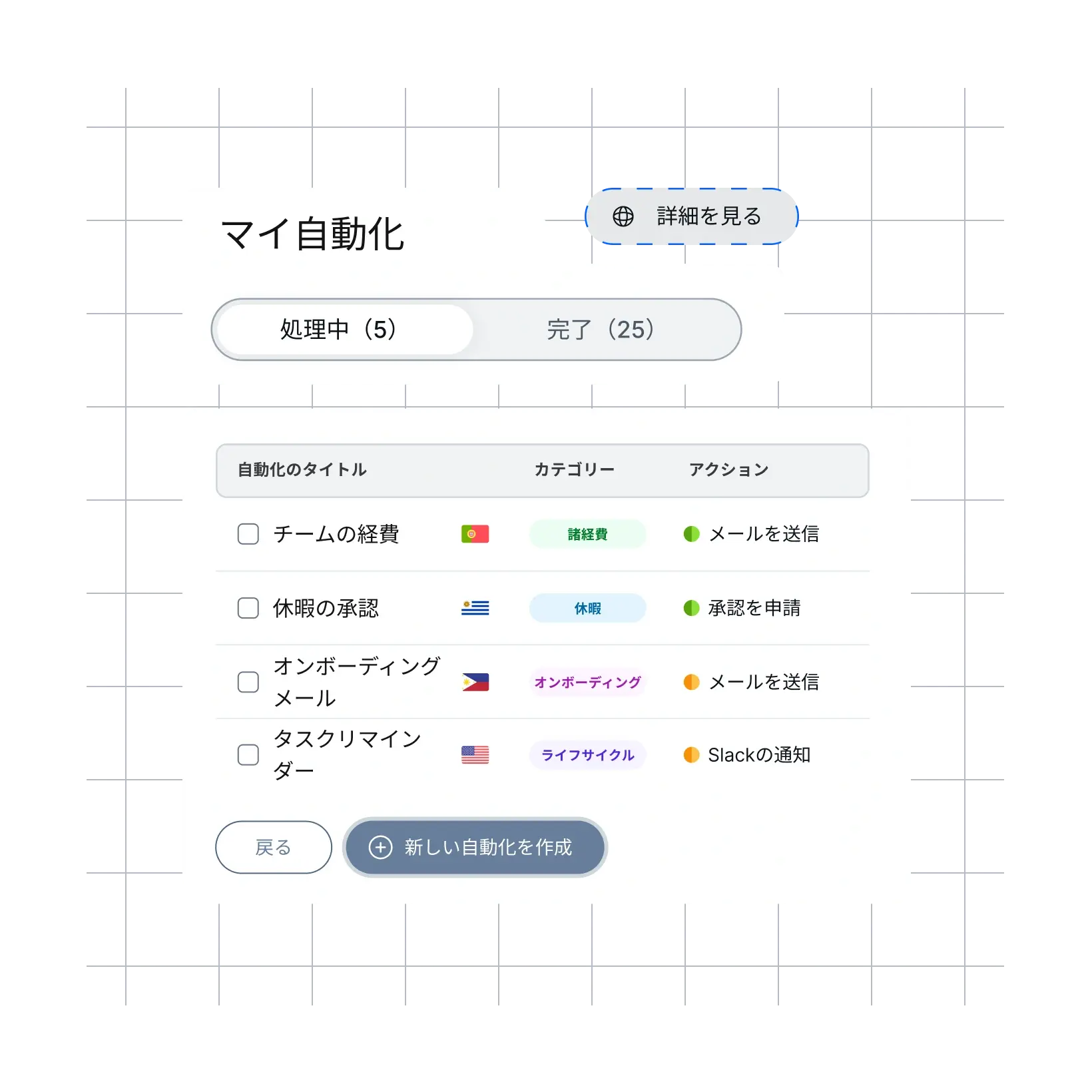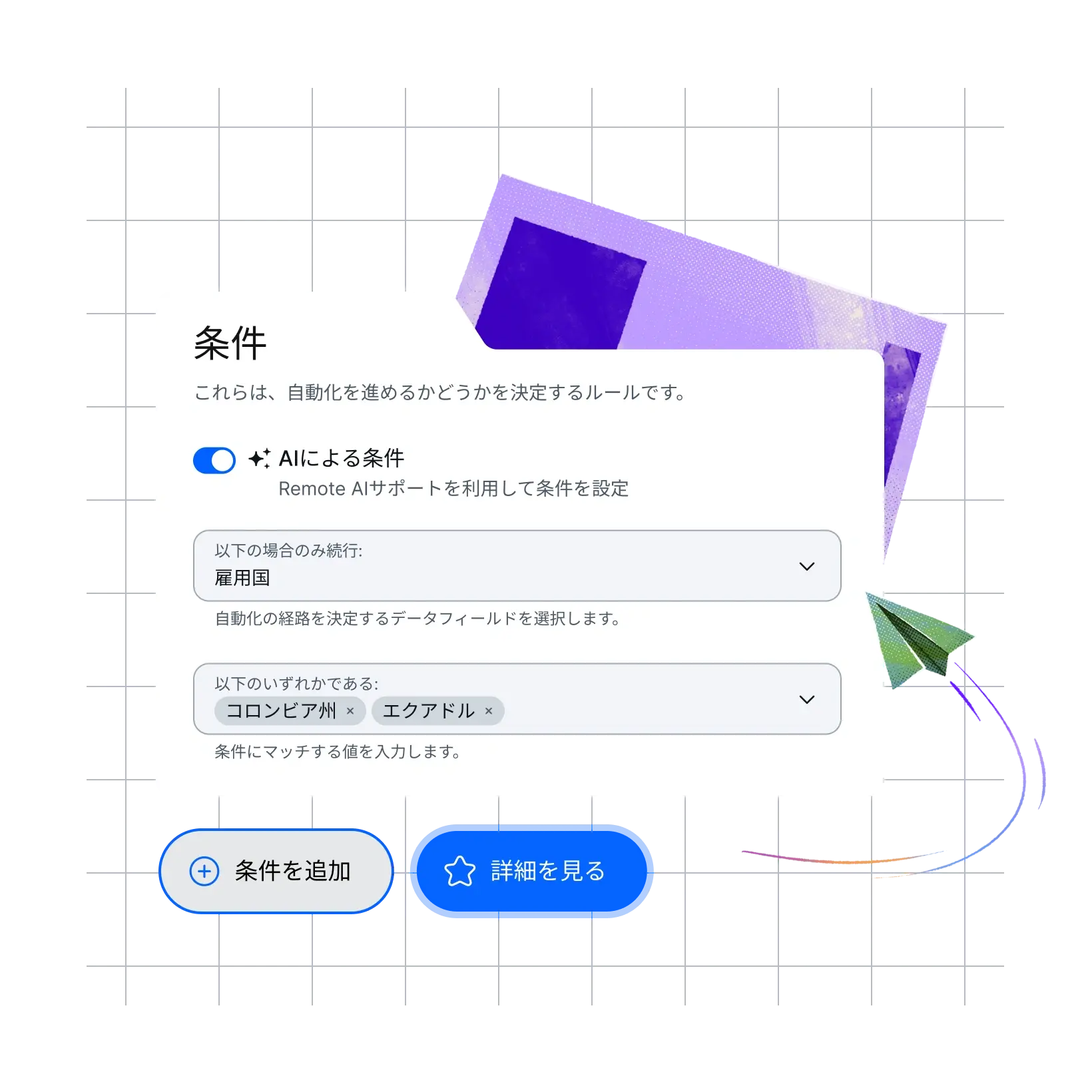 何が必要かを説明するだけで、RemoteのAIがワークフローを自動生成してくれます。設定面倒な設定やロジックツリーは不要で、あなたのプロセスをそのまま実行できます。