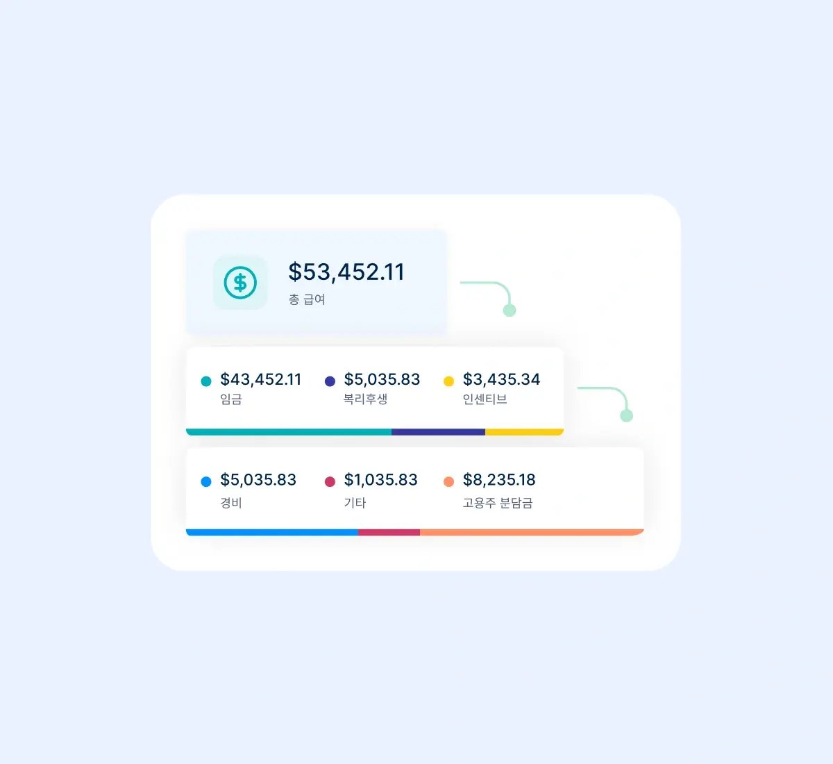 단일 서비스를 통해 전 세계 직원의 급여 지급, 세금, 복리후생을 처리할 수 있습니다.