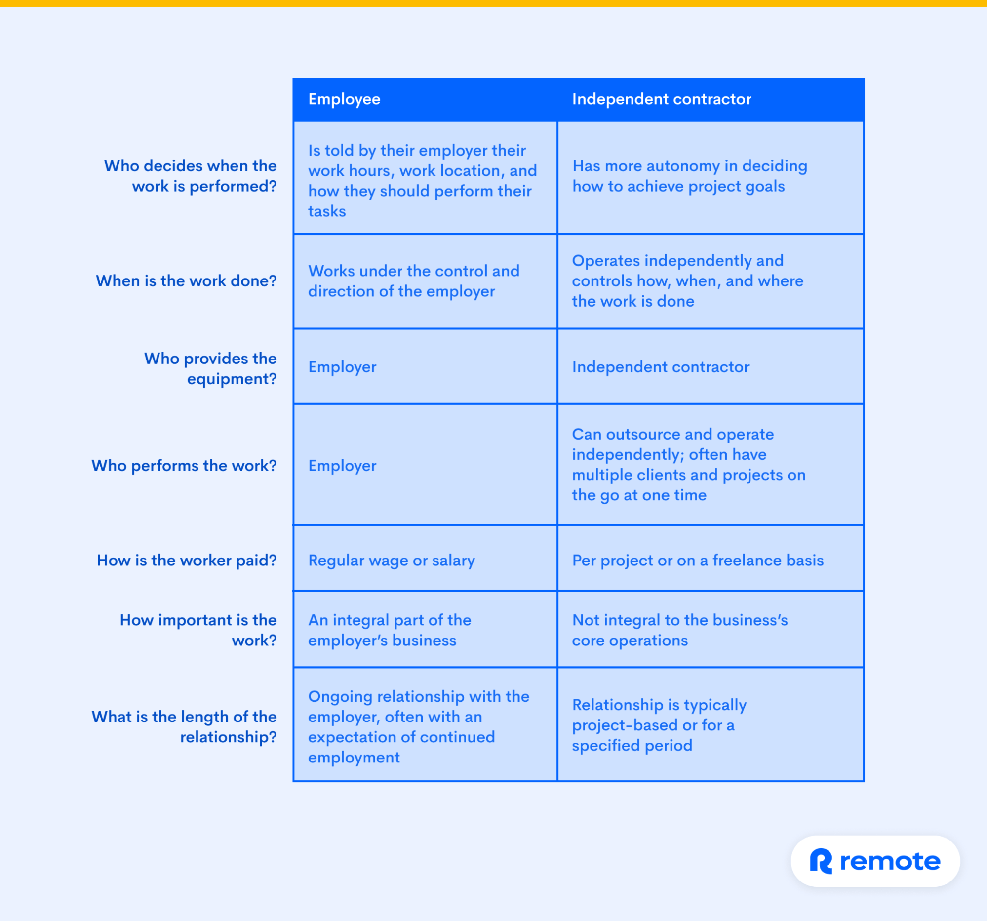 Elk land heeft daarvoor zijn eigen richtlijnen. De International Revenue Service (IRS) in de Verenigde Staten zegt bijvoorbeeld het volgende: "Iedereen die diensten voor je verricht, is je werknemer als je zeggenschap hebt over wat er gedaan wordt en hoe dit wordt gedaan.