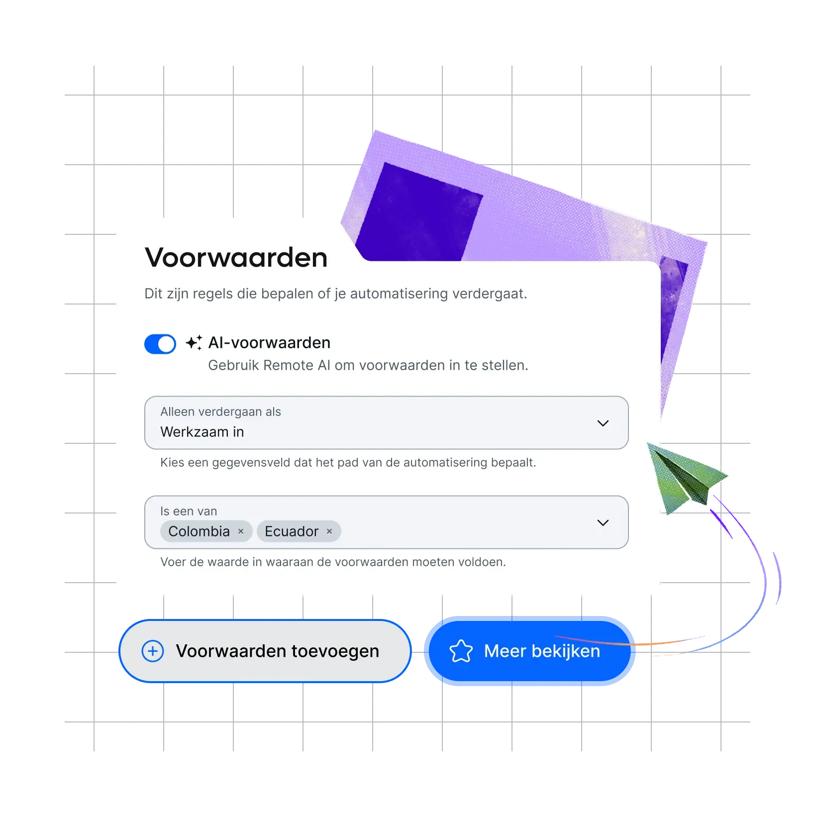Beschrijf wat je nodig hebt en laat Remote AI je workflow genereren. Geen configuratie, geen vertakkingslogica. Alleen jouw proces.