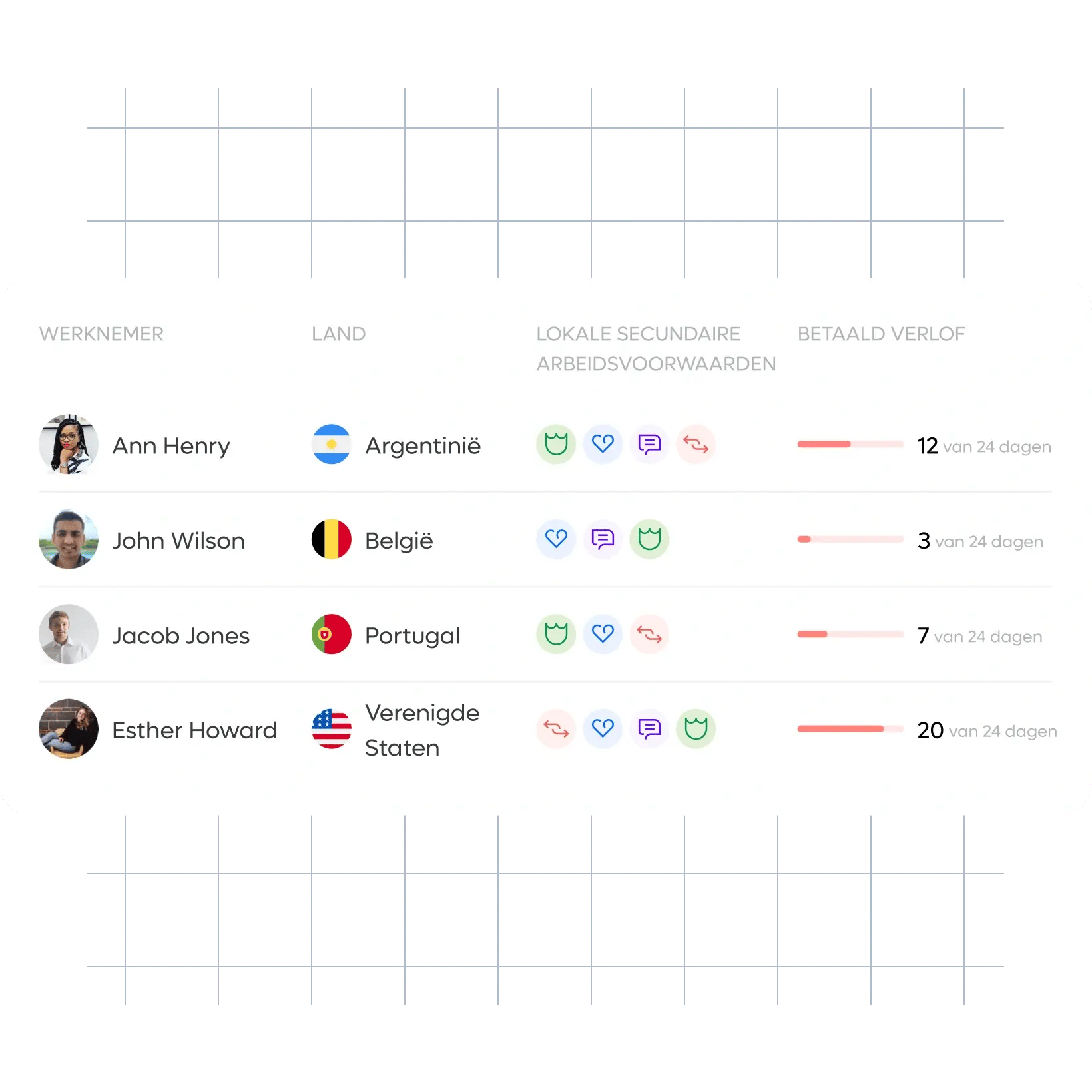 Ja, naleving heeft onze hoogste prioriteit. Ons team van juridische en HR-experts zorgt dat onze pakketten met secundaire arbeidsvoorwaarden volledig compliant zijn in elk land waar je werknemers aanneemt, zelfs wanneer de wetgeving verandert.