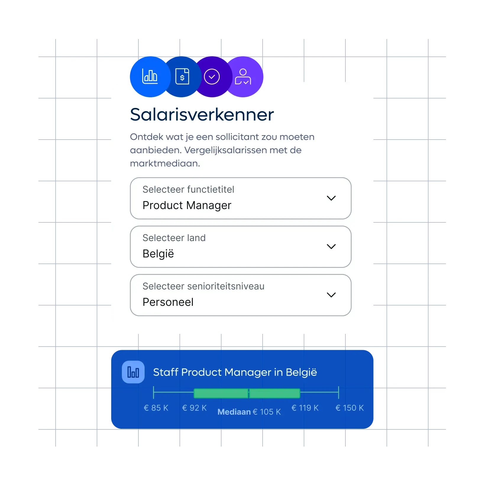 Met de nauwkeurige realtime salarisgegevens van de Salarisverkenner kunnen HR-managers strategische beslissingen nemen die in lijn zijn met de bedrijfsdoelstellingen en de verwachtingen van werknemers. Dit kan leiden tot minder personeelsverloop, een efficiëntere verdeling van HR-budgetten en een betere positionering van je bedrijf als concurrerende werkgever in de globale markt.