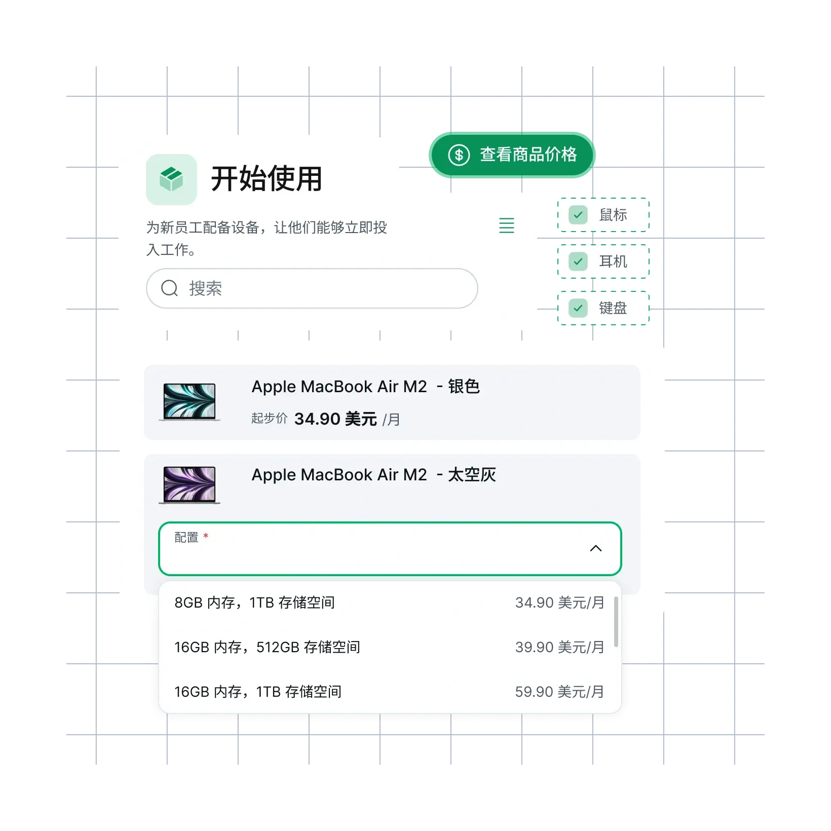 在 Remote 平台向新员工发送入职邀请后,仅需点击几次即可从设备目录完成订购,并支持全球直邮。
